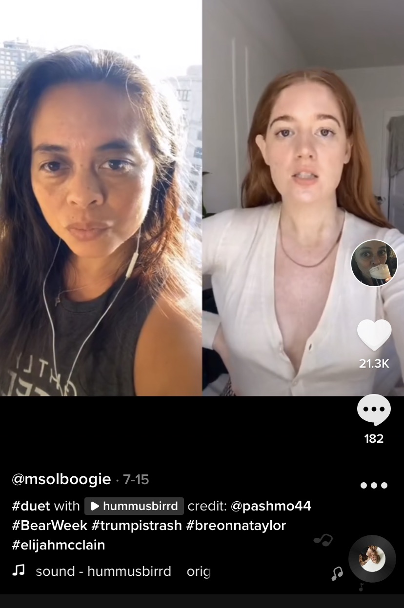 More creators with interesting voices, typically younger people and people of color, started sharing their activism and political ideas. TikTok became at once a place for entertaining escapism and a genuine source of real time synthesis of current events as well as a platform for engaged and focused debate. I learned where I could find the nearest protest to me and interacted with informed creators from wide backgrounds including historians, professors, politicians, doctors, lawyers, and just every day people who are clearly smarter than I. Because of its reach and accessibility, TikTok enables users to witness immediately thousands of first-hand accounts of what people are actually experiencing as they happen and creating a community of likeminded individuals fighting for similar goals.